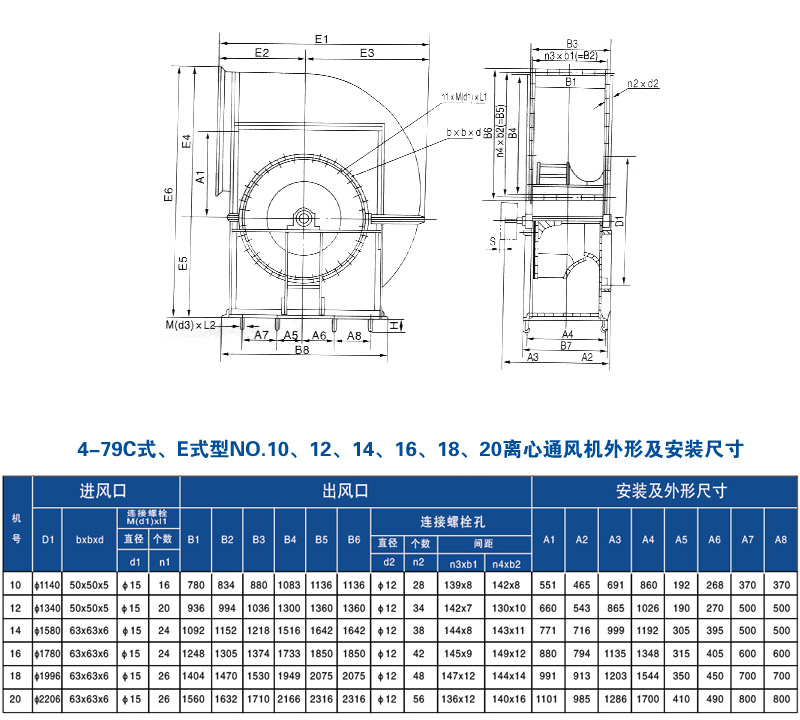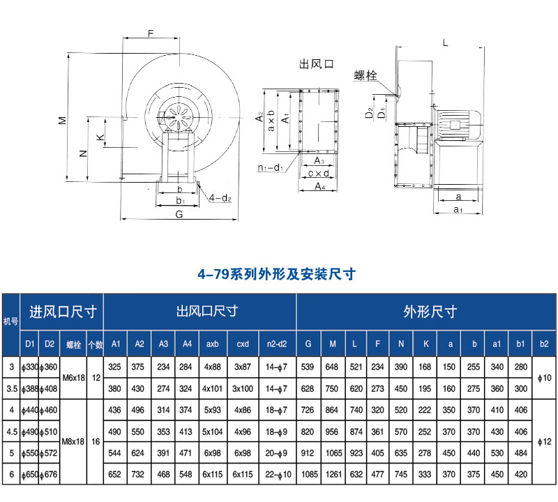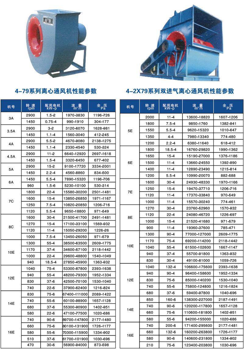 4-79系列離心通風機 4-79系列離心通風機可用于一般工廠及大型建筑的室內通風換氣。既可用來輸入氣體,也可用來輸出氣體,輸送氣體的種類為空氣的其他不自燃的,對人體無害的,對鋼鐵材料無腐蝕性的氣體。氣體內不能含有粘物質,所含的塵土擴硬質顆粒物不大于150mg/m3,氣體溫度為不超過80℃。