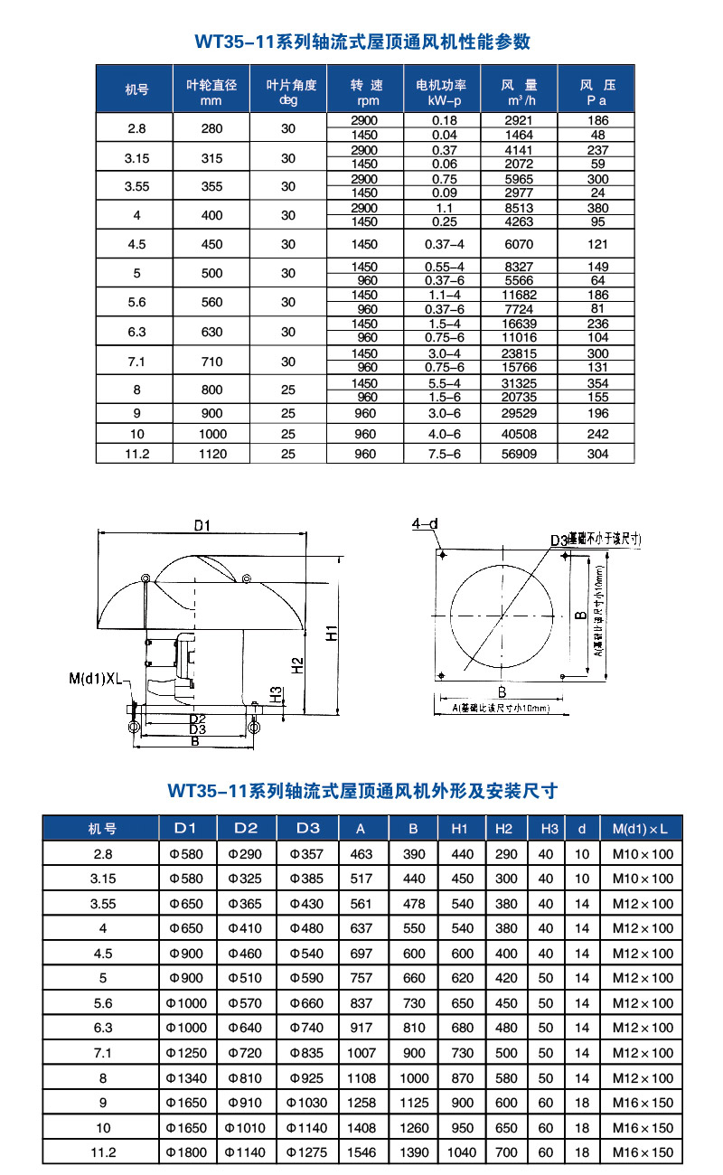 FWT35屋頂通風機,可用于輸送腐蝕性氣體,其性能參數與WT35一致。